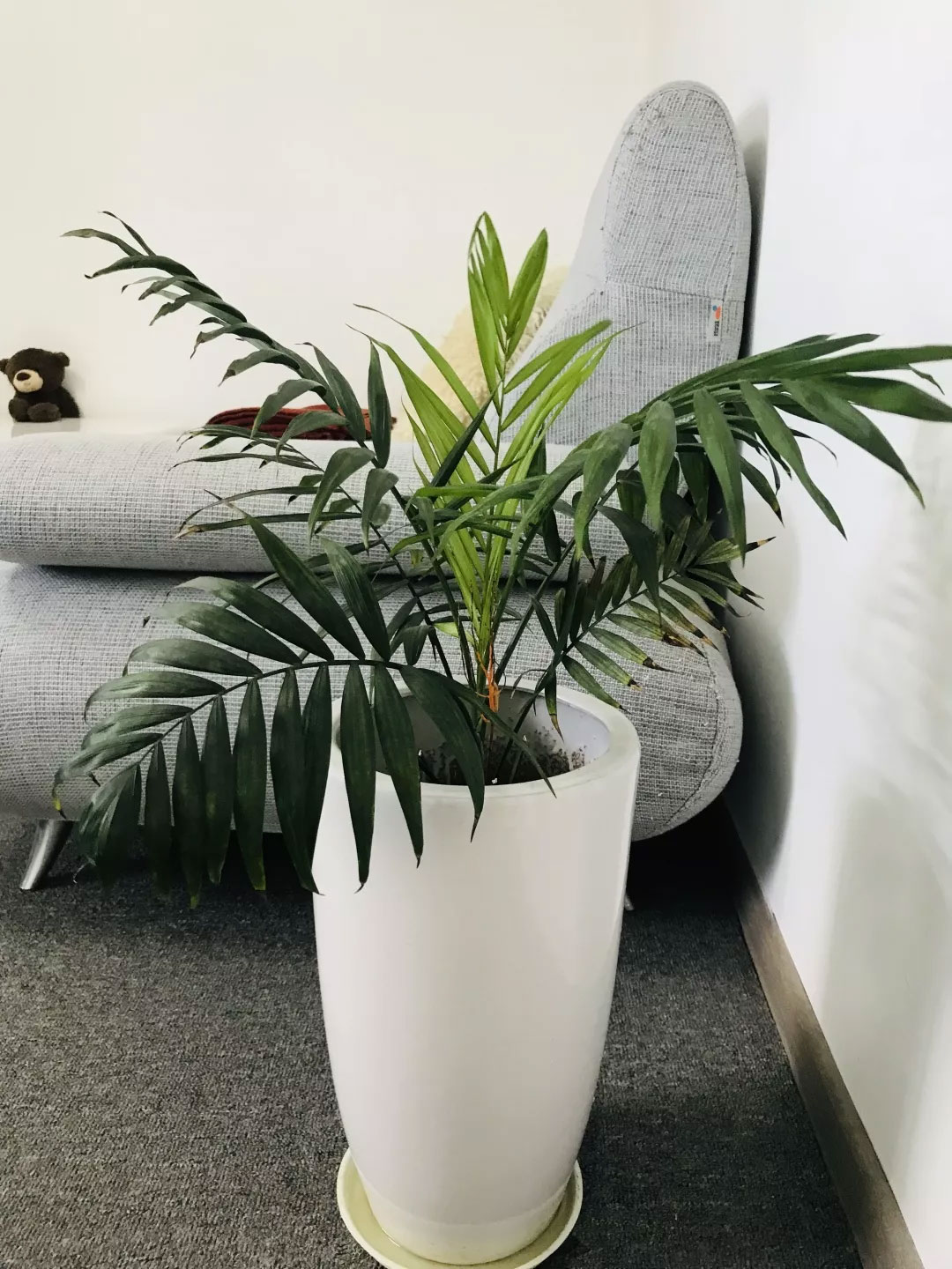 刚开始它摆在一个没有阳光的地方,没到半年就枯萎了。后来我开始把它搬到一个有阳光和通风的房间,大概过了3-4个月后,它开始长大了、慢慢的茂盛,但是叶子始终长不出刚来的时候那么新绿,看起来有些皱巴巴的。也因为此,它常常被大家误解,说它不好看,没有朝气,不符合心理咨询室需要的欣欣向荣的要求,要求我把它换了。